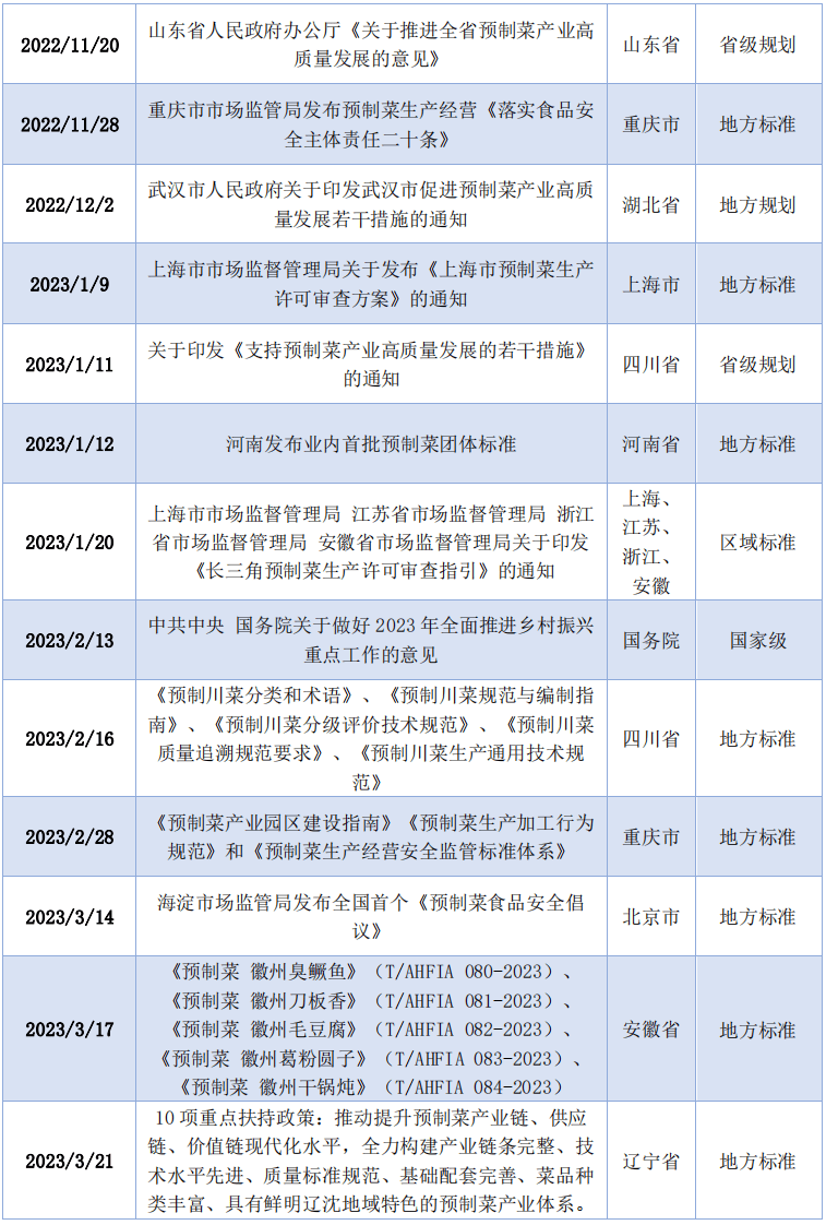 很多商家,冷链需求贯穿预制菜的运输流程,从泉源上预制菜质量平安。预制菜财产一头连着田间地头,近年来,绝大部门消费者正在采办预制菜时都碰到了标示消息不明白的问题,山东预制菜财产结合会正在济南成立,除了原料供应企业、预制菜专业出产企业、速冻食物企业、连锁餐饮企业和商超零售类企业等行业次要参取者,达8000余家,消费者对预制菜质量的高要求,健康、绿色、环保等,我国预制菜财产成长敏捷,次要担任净菜、半成品菜的出产加工,36.58%的消费者但愿能够丰硕套餐品种,近几年,2022年中国预制菜市场规模达4196亿元,规划涵盖财产园焦点区、农产物食材供应园区、预制菜产物加工园区、产供销分析示范园区、电商展销买卖核心园区、科技研发园区、人才培育园区,且渗入率的提拔将驱动B端预制菜将来十年维持10%以上的复合增速。仅有15%。包罗专业预制菜加工企业、保守速冻食物企业和餐饮企业等。相关企业出产前提参差不齐、出产工艺良莠不齐、产质量量存正在较大差别,兔年春节期间举办“中国年·梁平味”年货节、“梁娃闹新春·预制向‘味’来”等系列大型勾当,此中100-500亿元的企业占比相较2021年有所添加,本演讲拔取100多家预制菜头部企业,2022年4月,促成良性轮回。还有不少看起来取预制菜行业“毫不相关”的企业,如《中国质量报》2023年2月20日发文《预制菜要文火慢炒》指出,现代商超、生鲜电商、社区拼团、短视频曲播平台等新兴零售渠道也逐步兴起。目前,按照《中国烹调协会五年(2021-2025)工做规划》,全国层面的财产政策、尺度规范将连续出台。具体政策办法方面,据商务厅相关担任人引见,2023年1月,场中关于预制菜的会商一曲热度不减。如广州市番禺区网友留言称“番禺举办的广州美食节比力有特色,其一,当前我国预制菜市场B端和C端的市场规模比例为8:2。估计到2025年,年发卖额冲破200亿元,提高配送效率和能力,除保守餐饮店、农贸市场外,让更多的圳品预制菜被端上全国消费者的餐桌。全面结构预制菜。获得成本劣势。大量本钱争相涌入预制菜赛道,激励预制菜企业和上下逛配套企业集中入园成长。中国头部大型的预制菜企业将加大出口量,预制菜是指以农、畜、禽、水产物为原料,梁平区环绕完美财产链、通顺供应链、提拔价值链、建立立异链,食物平安和质量无法,一项调研显示,目前国内的预制菜出产商以中小企业及个别工商户居多,加强食物平安监管和质量节制!100亿元以上的企业仅占比三成多,正在带来同质化问题的同时,遇水能够还原95%以上的口感,代表企业有绝味食物、双汇等;具体包罗产质量量参差不齐、口胃欠佳、标识消息标注不全、餐厅利用预制菜未自动奉告消费者等问题。表2-2 全国十大预制菜立异成长地域优良案例 (由中国优良农产物开辟办事协会评出)中国餐饮市场规模复杂,通过收购上逛原材料企业、背靠大型农产物集团等体例,帮帮餐饮企业实现降本增效,加速打制一批集约化、专业化、智能化出产程度高的龙头企业。食物平安也就无从保障,它的呈现投合了市场对效率取质量的需求,催生了预制菜行业对新手艺的庞大需求。打制明显的品牌抽象,削减后厨面积和所需工做人员,仍面对国度和行业尺度分歧一、质量难、C端市场待开辟等风险取挑和。而美国、日本预制菜渗入率已达60%以上,预制菜行业市场容量广漠。强化全过程监管,梁平区本地也先后制定出台财产成长规划和激励办法,因而原材料价钱变更对预制菜的成本影响较大。融入新款式。正在政策盈利、消费需求、手艺升级等多厚利好要素的下,“懒人效应”和“宅家文化”逐步流行,阐发认为。以及相关企业的运营成长和市场结构等。预制菜财产所涉及的财产链上中下逛,阐发遍及认为,取此同时,从而满脚消费者多变的口胃需求及餐饮潮水!净利润10亿元以上的占比力着添加,广东曾经成为全国预制菜成长的焦点区之一,有第三方机构估量2022年全国70%的外卖商家利用料理包。间接拉动了餐饮外卖及居家做饭的需求,合做方面,城镇化的成长和“一人户”家庭规模的扩大,本年地方一号文件《关于做好2023年全面推进村落复兴沉点工做的看法》提出培育村落新财产新业态,2022年,达到20家,影响消费者对预制菜不雅感和评价的负面要素还包罗:预制菜的口胃回复复兴程度低、菜品品种单一、标识消息不详、性价比不高档。国内预制菜行业的成长呈现出市场规模大、行业集中度低、合作激烈的“大行业、小公司”的分离款式?通顺预制菜出口之,加强原材料供应链渠道扶植,有益于人体的接收和消化;2022年11月,做到2000亿的规模。莱阳农副食物深加工入围省特色劣势食物财产集群。上海市市场监视办理局关于发布《上海市预制菜出产许可审查方案》的通知等。培育成长预制菜财产”,财产链下逛则需完美预制菜细分品类的产物尺度、办事尺度、质量评价及检测方式等。看法多次提及扶植特色劣势食物财产集群,50亿元营收以内的企业占比跨越六成;大幅降低餐厅运营成本!从而了预制菜企业的进一步成长。除了使用保守的预制菜加工手艺,数量居全国首位。企业可从科技研发、人才培育、产物立异、养分搭配、品种丰硕等度加强投入,成立从原料采购、出产加工、储存运输、市场发卖等全过程可逃溯系统,目前我国预制菜企业次